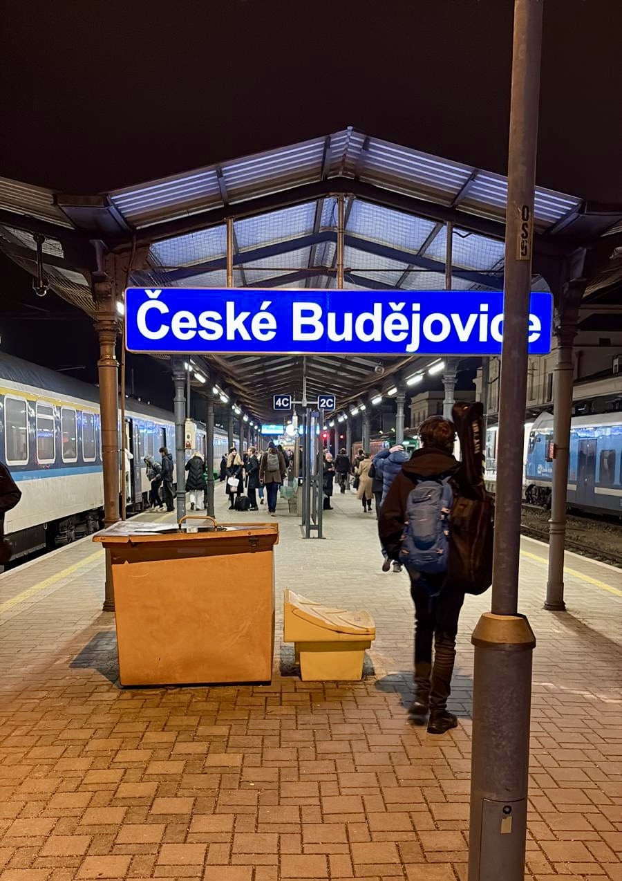 Pour cette mission à Budweis 2028, je suis parti en train de Bruxelles, en prenant le Bruxelles-Prague, départ 19h22 de Bruxelles Midi et arrivée à Prague à 10h50 le lendemain via Amsterdam et Berlin. Une manière d’expérimenter la proposition de voyage bas carbone de Bourges 2028.