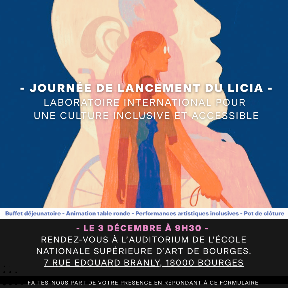 Le 3 décembre, Bourges devient le point de rencontre de toutes celles et ceux qui veulent imaginer une culture où chacune et chacun trouve sa place. Une journée pour réfléchir, échanger et expérimenter ensemble l’inclusion au cœur de Bourges 2028. À l’occasion de la Journée internationale des droits des personnes en situation de handicap, Bourges 2028 et l’ENSA lancent officiellement le LICIA – Laboratoire international pour une culture inclusive et accessible.